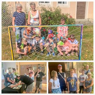 Die fünften Klassen aus Buttstädt haben sogar noch einen kreativen Kurs drangehängt und haben noch über 30 Objekte für die Gartenausstellung hergestellt, sodass die Netze jetzt richtig prall gefüllt sind - super!