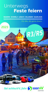 Der R3- und R5-Fahrplan mit vielen Eventterminen (nicht nur aus unserem Stadtgebiet) erschien nun, gebündelt in einer Broschüre und mit zahlreichen Fotos der Feste und Feiern aus der Stadt Wadern. Die Broschüre ist bei uns an der Rathaus-Zentrale kostenlos erhältlich. Nach den grauen Wintermonaten winken schon zahlreiche Veranstaltungen, nicht nur in der Stadt Wadern. Viele davon können Sie umweltfreundlich mit dem Bus erreichen, z.B. mit einer der drei R-Linien im Stadtgebiet.
