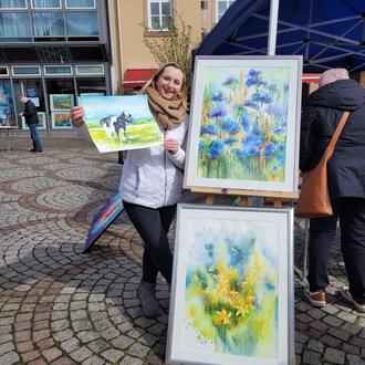 Künstlerin Tanja Bach malt live auf dem Marktplatz