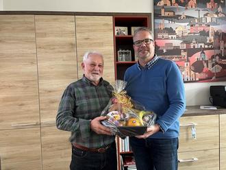 Anfang April verabschiedete Bürgermeister Jochen Kuttler den stellvertretender Jagdvorsteher Gerd Burtscher aus Morscholz. Er bedankte sich bei ihm mit einer kleinen Aufmerksamkeit für insgesamt 35 Jahre Dienst in der Jagdgenossenschaft.