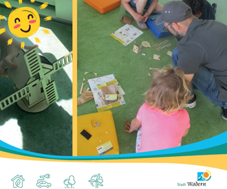 Susanne und Marc konnten das durch eine spannende und lustige Geschichte gut erklären, und durch die mitgebrachten Bausätze kleiner solarbetriebener Windräder konnten die Kinder gut sehen, was denn passiert, wenn die Sonnenstrahlen auf ein PV-Modul treffen.