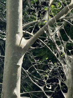 Die Gespinstmotte ist in den letzten Wochen im Saarland verstärkt aufgetreten. Die Raupen bilden ein silbriges, dichtes Gespinst mit feinen Fäden um die Pflanzen, das sie vor Fressfeinden und Regen schützen soll. Auch wenn es dramatisch und gruselig aussieht, ist es für Menschen und Tiere ungefährlich. Von den befallenen Bäumen werden die Blätter abgefressen, meist überstehen die Gehölze den Befall unbeschadet und treiben erneut aus.
