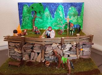Dass Geschichte alles andere als „langweilig“ ist, zeigen die vielfältigen Arbeiten der Schülerinnen und Schüler. Mit großer Begeisterung erforschten sie die historischen Hintergründe eines selbst gewählten Themas und entwickelten dazu ganz unterschiedliche Ideen, wie sie dieses am besten umsetzen könnten. Die Ergebnisse können sich sehen lassen: In den liebevoll gestalteten Modellen treffen Playmobil-Figuren und -Gebäude auf selbst gebastelte Requisiten und lebendig gestaltete Hintergründe. Die auf diese Weise entstandenen Dioramen („Schaukästen“) laden eindringlich zum aufmerksamen Entdecken der vielen Details und zur Einnahme der Perspektive der Jugendlichen ein.