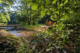 Am Samstag, 1. Juli 2023, machen wir uns auf, um den rund 13 Kilometer langen Rundkurs ab Büschfeld zu erwandern. Der Wanderweg ist genau das Richtige für heiße Sommertage, denn viele schattige Passagen sorgen immer wieder für eine angenehme „Abkühlung“. Die Strecke ist teilweise anspruchsvoll, immer wieder geht es bergauf und bergab, über breitere Weg wie auch über schmale Pfade. Die Wege führen an vielen Bächen, Zuflüssen und Weihern vorbei, daher der Name der Traumschleife. Nach der ersten größeren Steigung ist nach knapp zwei Kilometern ein toller Aussichtspunkt am Kälberfels erreicht, der weite Blicke über das Tal der Prims eröffnet. Im Sollbachtal bewundern wir ein Naturdenkmal, die „Fünf Eichen“. Sie stammen wohl aus der Napoleonischen Zeit und wuchsen aus einem Eichenstock heran. Das Sollbachtal bildete von 1920 bis 1935 die Grenze zwischen dem Deutschen Reich und dem „Saargebiet“. Nach über 6 km steht der „Drei-Kreise-Stein“, wo drei Landkreise aufeinandertreffen, ehe der Weg noch weiter ansteigt. Der bestens ausgeschilderte Wanderweg mit vielen Infotafeln zeigt tolle Naturlandschaften mit seltenen Pflanzen, faszinierende Ausblicke sowie bizarre Felsformationen. Gegen Ende noch ein kleiner Abstecher zum Primslauf, bevor es wieder zum Parkplatz bei der Schlossberghalle geht. Denkt an gutes Schuhwerk mit rutschfestem Profil.