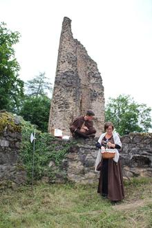 Die goldene Gans zieht mit ihrem Gefolge über die Burg, Rumpelstilzchen hüpft wütend auf dem Burgplateau herum, das tapfere Schneiderlein erlegt an der Burgmauer Sieben auf einen Streich und die Wichtelmänner wuseln auf der Vorburg herum.