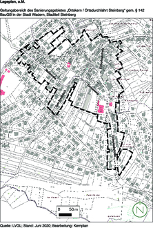 (1) Der räumliche Geltungsbereich des Sanierungsgebietes umfasst alle Grundstücke und Grundstücksteile innerhalb der im anliegenden Lageplan (LVGL; Stand: Juni 2020) durch eine Umgrenzungslinie abgegrenzten Fläche. Der Lageplan ist Bestandteil der Satzung und wird zu jedermanns Einsicht bei der Stadt Wadern, Rathaus, während den allgemeinen Dienststunden bereitgehalten.