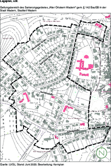 (1) Der räumliche Geltungsbereich des Sanierungsgebietes umfasst alle Grundstücke und Grundstücksteile innerhalb der im anliegenden Lageplan (LVGL; Stand: Juni 2020) durch eine Umgrenzungslinie abgegrenzten Fläche. Der Lageplan ist Bestandteil der Satzung und wird zu jedermanns Einsicht bei der Stadt Wadern, Rathaus, während den allgemeinen Dienststunden bereitgehalten.