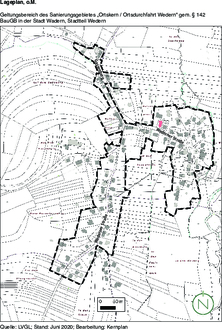 (1) Der räumliche Geltungsbereich des Sanierungsgebietes umfasst alle Grundstücke und Grundstücksteile innerhalb der im anliegenden Lageplan (LVGL; Stand: Juni 2020) durch eine Umgrenzungslinie abgegrenzten Fläche. Der Lageplan ist Bestandteil der Satzung und wird zu jedermanns Einsicht bei der Stadt Wadern, Rathaus, während den allgemeinen Dienststunden bereitgehalten.