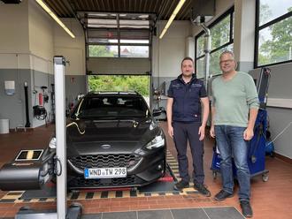 Prüfstellenleiter Tobias Woll und Bürgermeister Jochen Kuttler.