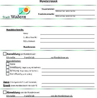 Mit dem in dieser Ausgabe des Amtlichen Bekanntmachungsblattes der Stadt Wadern beigefügten Antrag haben Sie die Möglichkeit, Ihren Hund oder Ihre Hunde unkompliziert an- oder abzumelden.