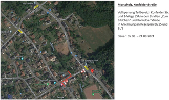 Im Rahmen der Bauarbeiten zur Verlegung von Glasfaserkabeln ist es notwendig, im Stadtteil Morscholz einen Teilbereich der Konfelder Straße voll zu sperren. Betroffen ist der Abschnitt zwischen den Anwesen Konfelder Straße 1 bis 6.