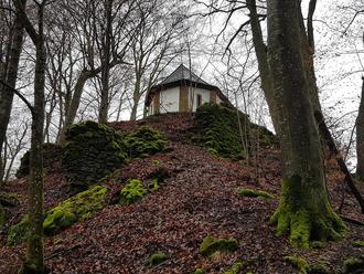 Auf dem Haan über Lockweiler leuchtet weithin die weiße Kapelle.