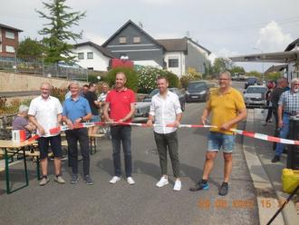 Unser Foto zeigt Bürgermeister Jochen Kuttler, Thomas Bies vom städtischen Bauamt, Ortsvorsteher Michael Dewald sowie die Stadtratsmitglieder Bernd Theobald und Manfred Paulus (von rechts) bei der offiziellen Freigabe der Straße.