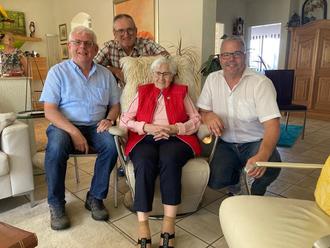 Rosa Kassing aus Lockweiler feierte am 28. August ihren 100. Geburtstag. Damit zählt sie zu den ältesten Bürgerinnen der Stadt Wadern. Seit Oktober 2022 lebt Rosa Kassing im Seniorenheim in Wadern, sie ist aber weiterhin eng mit Lockweiler verbunden. Und so gratulierten ihr der Waderner Bürgermeister Jochen Kuttler (rechts) und mit Christoph Kaub für Wadern (links) und Konrad Schmidt für Lockweiler (2.v. links) gleich zwei Ortsvorsteher.