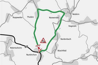 Aufgrund der geringen Fahrbahnbreite müssen die Abschnitte unter Vollsperrung ausgeführt werden, die Umleitung verläuft in dieser Zeit in beiden Richtungen über Thailen (L 152 / L 151), Wadern und Noswendel (L 148).