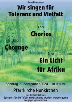 Drei Chöre, der Chor Chorios aus Britten, der Chor Chorage aus Wadern sowie der Chor „Ein Licht für Afrika e.V.“ haben sich zusammengeschlossen und singen gemeinsam für Toleranz und Vielfalt in unserer Gesellschaft. Musik verbindet und schafft neue Brücken und genau das ist ein Anliegen der zahlreichen SängerInnen.