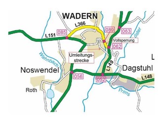 Der Landesbetrieb für Straßenbau (LfS) wird in Wadern entlang der L 366 (Birkenfelder Straße) zur Aufrechterhaltung der Verkehrssicherheit im Bereich der Nepomuk-Statue Sicherungsarbeiten vornehmen lassen.