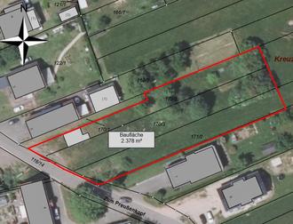 Diese besteht aus ca. 1.100 m² bebaubarer Fläche und weiteren 1.278 m² Gartenland. Für die Baufläche besteht eine Baufrist von 3 Jahren nach Erwerb.