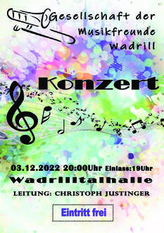 Endlich ist es wieder so weit! Nach 3 Jahren Corona-Pause veranstaltet die Gesellschaft der Musikfreunde Wadrill e.V. wieder ein Konzert! Hierzu möchten wir ganz herzlich in die Wadrilltalhalle einladen.