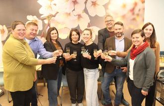 v.l. Patrizia Mötzel (Ortsvorsteherin Nunkirchen), Roland Ruttloff (idee.on), Birgit Schmitt (Schulleiterin), Dr. Kathrin Andres (Bildungsministerium), Nicole Mohm (idee.on), Bürgermeister Jochen Kuttler, Frank Seiler (sbhoch3), Sophie Schäfer, Vanessa Kautenburger (beide Stadt Wadern)