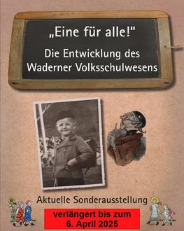 Wegen der großen Nachfrage wird die aktuelle Sonderausstellung „Eine für alle! – Die Entwicklung des Waderner Volksschulwesens“ bis zum 6. April 2025 verlängert.