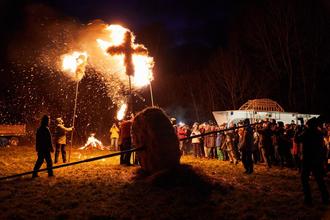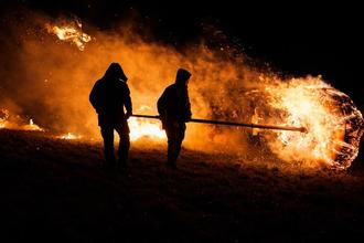 Brennendes Erbsenrad rollt ins Tal.