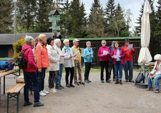 Der Chor im Mai 2024 auf dem Adlersberg. Ulli und sein Team bekommen hier gerade ihr Ständchen.