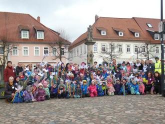 Deshalb gehen wir in diesem Jahr am Rosenmontag mit Friedenstauben durch unsere schöne Stadt Schleusingen bis zum Rathaus mit einer großen Bitte an alle da oben, die was zu sagen haben: Sorgt dafür, dass alle Kinder dieser Welt in Frieden wachsen können! Hört auf zu kämpfen und redet miteinander, so wie Ihr es im Kindergarten schon gelernt habt.