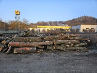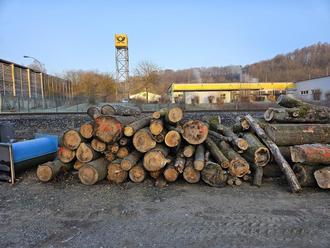 Auf dem Betriebsgelände des Bauhofes in der Themarer Straße befinden sich ca. 70 Raummeter (rm) Stammholz aus Baumfällungen im Stadtbereich.