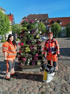 Seit ca. 4 Wochen schmücken 2 wunderschön bepflanzte Pyramiden den Marktplatz in Schleusingen.