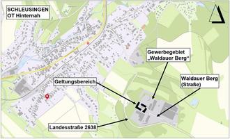 Der Geltungsbereich der 2. Änderung ist auf den Wendeplatz der Gewerbeerschließungsstraße „Waldauer Berg“ sowie die angrenzende Baufläche einschließlich Pflanzbereichen begrenzt (vgl. Übersichtsplan).