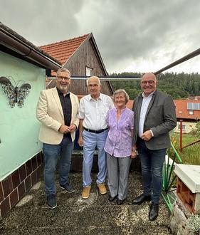 Die Eheleute Erika und Manfred Traut aus Hinternah feierten am 30.07.2025 ihre Eiserne Hochzeit. Der Beigeordnete des Landkreises, Dirk Lindner, und der Bürgermeister, Alexander Brodführer, überbrachten Glückwünsche.