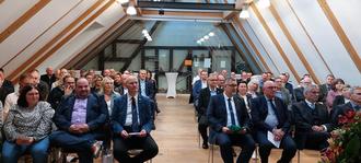 Bürgermeister Alexander Brodführer begrüßte zahlreiche Gäste - darunter die Delegation aus Plettenberg mit Bürgermeister Ulrich Schulte, Vertreterinnen und Vertreter aus den Partnergemeinden Billigheim-Ingenheim und Ilbesheim sowie Stadträte, Vereinsmitglieder, Unternehmer und Vertreter der Kommunalen Arbeitsgemeinschaft Oberzentrum Suhl, Zella-Mehlis und Oberhof.