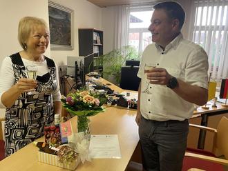 Der aktuelle Bürgermeister, André Henneberg, gratulierte Frau Eichhorn zu diesem ganz besonderen Jubiläum und bedankte sich bei ihr für ein halbes Jahrhundert voller Engagement und unermündlichem Einsatz in den verschiedenen Bereichen der Verwaltung.
