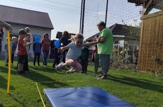 Auf dem Sportplatz am Helenenstein gab es einen fröhlichen Wettbewerb im „Floßfahren“, Weitsprung, Zielwerfen und einem Parcour mit besonderen Herausforderungen.