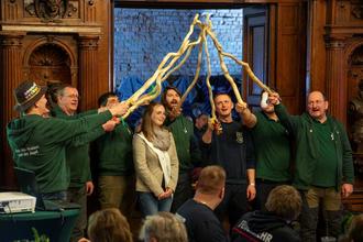 Beginnen musste dieser aber leider mit einer traurigen Nachricht. Der Tod des Mitbegründers des Fest des Waldes und der Jagd, sowie dem Ehrenmitglied des Natur & Kultur Hummelshain e.V., Karlheinz Kirsch einen Tag zuvor. Ihm zu Ehren wurde ein letztes Halali von der Empore des Festsaals gespielt.