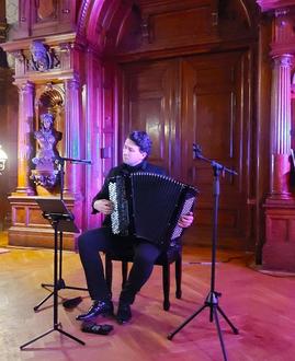Eine besondere Referenz an das Hummelshainer Jagdschloss war die erste Zugabe. Einem Wunsch des Fördervereins entsprechend, hatte sich Goran Stevanovich im Vorfeld näher mit Johann Sebastian Bachs „Jagdkantate“ beschäftigt und daraus eines der größten Erfolgsstücke Bachs, die Arie „Schafe können sicher weiden“, für Akkordeon bearbeitet und hinreißend dargeboten.