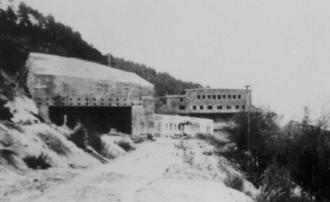 Bunker 2, mit Werkstrasse und Werkstattbunker 1, dahinter Bunker 0
