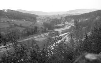 Ein Problem, das sich bei diesen Reichsbahnanschluss ergab, bestand in der Überbrückung eines Höhenunterschieds von ca. 65 m. Die zwei Kilometer Bahnstrecke zwischen dem Abzweig von der Hauptstrecke zur Werkanlage reichte dafür nicht aus und die erforderlichen Planierungsarbeiten waren zu aufwendig. Geplant wurde deshalb der Bau eines Abzweigs Richtung Dehnatal, auf halbe Höhe, damit der Zug und die Güterwaggons rangieren konnten. Hierfür baute man zwei Brücken, die noch heute als Pfeiler die Landschaft prägen.