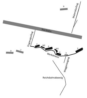 Die Gleisanlage sollte entlang des Walpersberg direkt bis zum Reichsbahnaufzug verlaufen, von hier erfolgte mittels Schrägaufzug das Hochziehen der einzelnen Waggons auf Werkstattstraßenhöhe, wo sie entladen und anschließend wieder abgelassen werden. Eine äußerst aufwendige Verfahrensweise, zumal das Risiko von Luftangriffen während dieses Vorgangs, sicherlich sehr präsent war. Die „REIMAHG“ Betriebsleitung hatte dies wohl mit einkalkuliert.