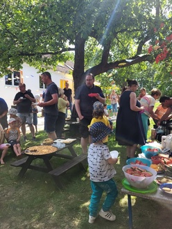 Zum Thema „unsere Sinne“ konnten die Kinder gemeinsam mit ihren Eltern forschen (Sehen, Hören, Fühlen). Den Geschmackssinn konnten alle bei Kaffee, Kuchen und Obst testen. Der Kuchen wurde in unseren neuen Backhaus von Katrin Schöneburg-Kremin gebacken - vielen Dank.