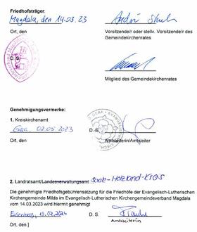 Für die Friedhöfe in Großkröbitz, Milda, Rodias und Zimmritz gelten folgende Ruhefristen: