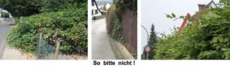 Sträucher und Hecken dürfen grundsätzlich nicht in öffentliche Verkehrsfläche hineinwachsen.