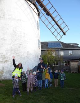 Gut gestärkt ging es nach dem Frühstück auf Wanderschaft. Ziel war die Windmühle in Dittrichshütte. Dort erwartete uns Her Erbse, der uns durch die Windmühle führte und seine Geschichte im Wandel der Zeit vermittelte. In jeder der vier Etagen gab es Spannendes zu entdecken und auch auszuprobieren. Es war ein tolles Erlebnis und alle Kinder waren sich einig, dass es gut ist, dass sich Leute gefunden haben, die die Windmühle reparieren und erhalten.