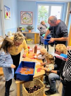 Ganz herzlich möchten wir uns noch einmal für den schönen Oma-Opa-Tag am 18.10.2023 gemeinsam mit Ihnen bedanken. Der Nachmittag war voller Spannung, Spiel und Freude. Alle haben viel gespielt, gebastelt und experimentiert und es sich bei Kaffee und selbst gebackenen Kuchen gut gehen lassen. Ein kleines Herbstprogramm der großen und kleinen Spatzen umrahmte dabei den zauberhaften Tag.