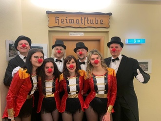 Ja der Zirkus hat sich angemeldet, Zirkus Gnadenhof kommt aus Madagaskar, die Tiere sind schon etwas betagt, hoffentlich bleibt keines auf der Strecke. Manege frei, das Zugpferd bringt den Wagen herein, die Vorstellung kann beginnen. Die Peitsche knallt, Giraffe, Löwe, Zebra und Nilpferd springen durch fast brennende Reifen, also nur die Stimmung brennt. Der Beifall spornt die Tiere zu Höchstleistungen an. Danach folgt eine akrobatische Nummer, die jüngsten Zirkuskinder, reizende Mädchen und starke Jungs, zeigen höchste akrobatische Kunst, das Publikum rast. Die Vorstellung macht Pause, jetzt mischt der DJ die Manege auf, von Moskau bis Zansibar geht die Reise und Cordula Grün ist auch dabei. Die Faschingsfreaks sind zur Polonaise durch den Saal unterwegs, das macht natürlich durstig. Doch für das leibliche Wohl ist gut gesorgt.
