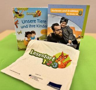 Für Kinder ab 3 Jahren liegen kostenlose Lesestart-Sets bereit, die während der Öffnungszeit abgeholt werden können. Enthalten ist ein Bilderbuch, das zum Vorlesen einlädt, sowie eine mehrsprachige Elternbroschüre mit vielen Vorlese- und Aktionstipps für den Familienalltag.
