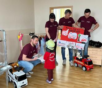 Die Spatzen erhielten unerwarteten Besuch und konnten sich dank einer Spende des Feuerwehrvereins Wittgendorf e. V., im Wert von 600 Euro, über eine portable Malwand, Kleiderstangen mit dazugehörigen Kleiderbügeln für die Verkleidungsspielecken und ein gemütliches Bett-Zelt freuen. Spiel, Spaß, Kreativität und ein gemütlicher Mittagsschlaf sind somit vorprogrammiert.