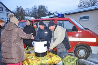 Es war ein arg frostiger Tag, was den Glühwein der Freiwilligen Feuerwehr zu einem begehrten Heizmittel machte. Die Kameraden hatten sich im Vorfeld überlegt, eventuell auch ein paar Bratwürste anzubieten, kamen von diesem Plan dann allerdings aufgrund der äußeren Bedingungen wieder ab. Eine durchaus nachvollziehbare Entscheidung.