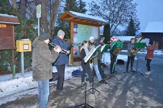 verbreitete der Hoheneichener Posaunenchor am 4. Adventssonntag 2022 auf dem Dorfplatz in Wickersdorf.